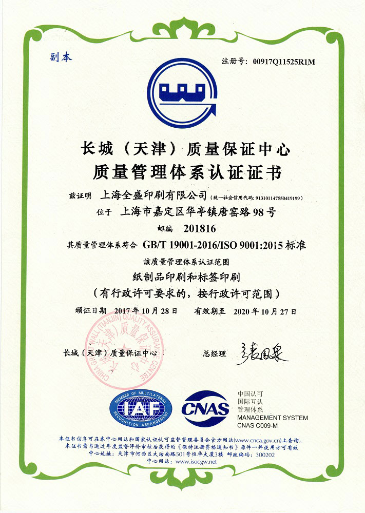 全盛 · 荣誉资质