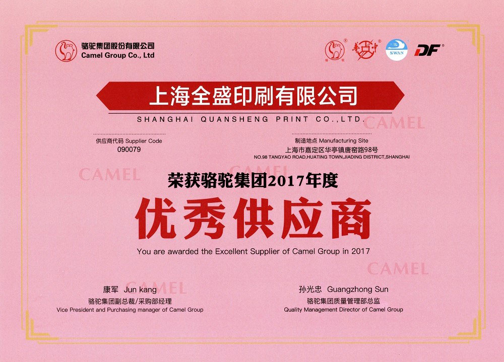 骆驼集团2017年度优秀供应商