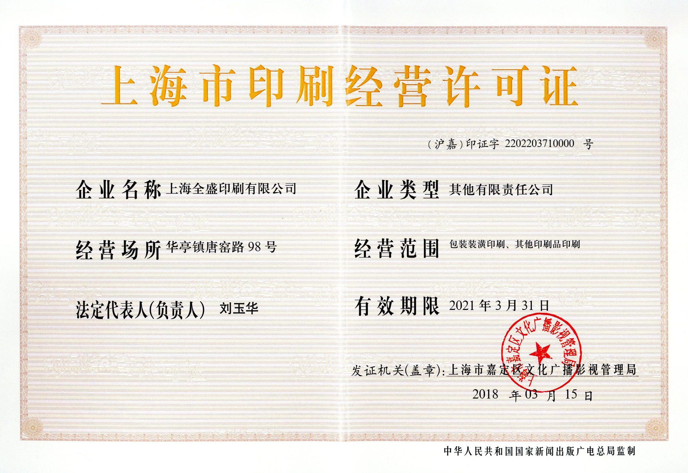 上海市印刷经营许可证